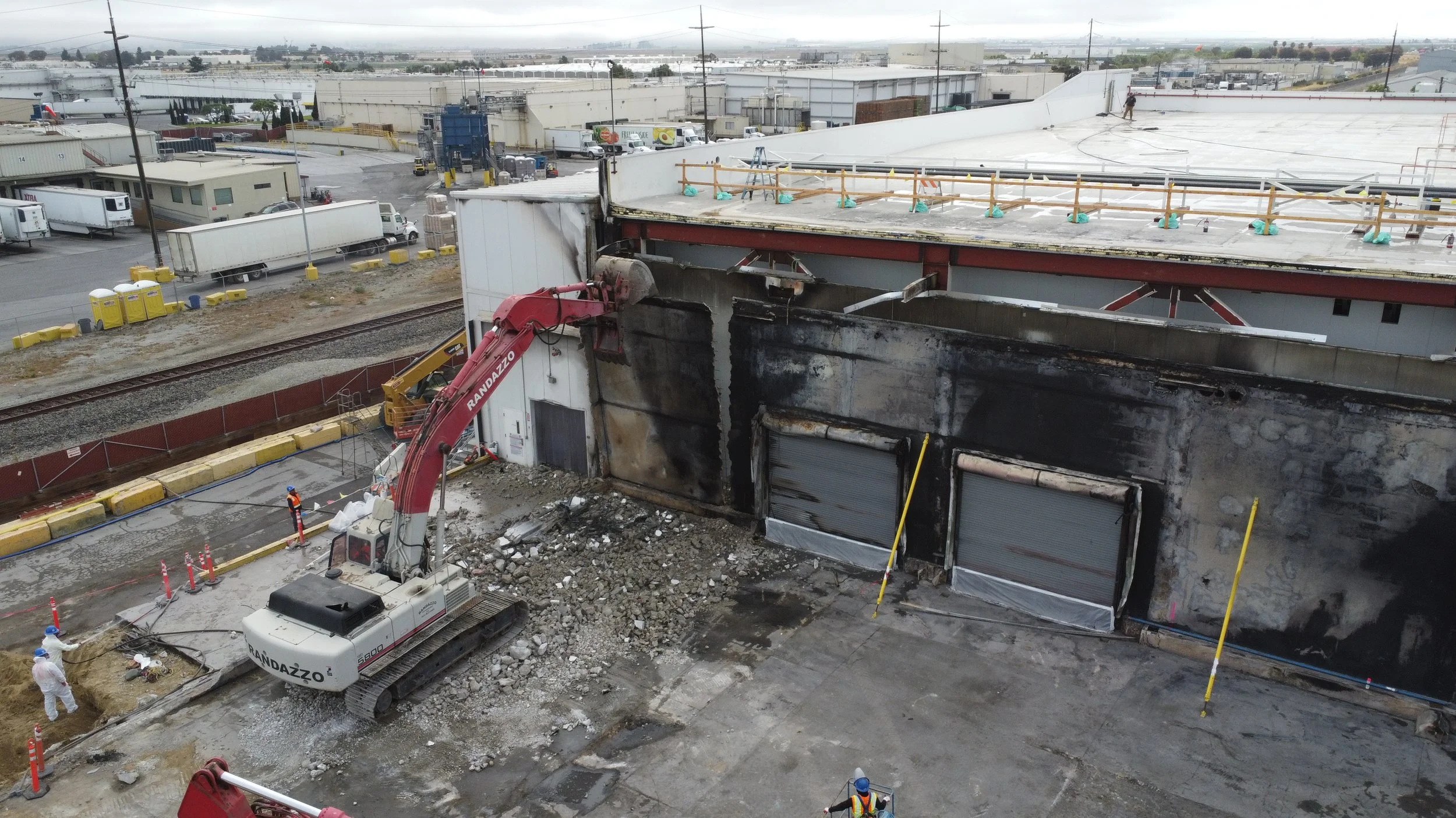 After the fire that took place at the Taylor Farms Salinas processing facility, REI led the emergency response teardown and site clean-up. The project required controlled demolition of structurally unstable areas, removal of ammonia refrigeration tanks and piping, ,management of chemical residues, and regulated disposal of Asbestos contaminated fire debris. All work was completed in compliance with OSHA, EPA, Monterey Bay Air Resources Board, and DTSC regulations. All work was completed under the direction of an independent 3rd party hired by Taylor Farms.